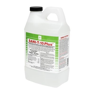 Sani-T-10 Plus is a 4th generation quat-based, food contact sanitizer for use in food handling and process areas, federally inspected meat and poultry plants, fruit and vegetable processors, wineries, restaurants, bars and institutional kitchens. Ideal to sanitize filling equipment, food processing equipment, meat and poultry or fruit and vegetable conveyors dishes, glasses, cooking utensils, and eating utensils.